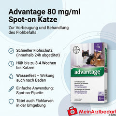 Lieferumfang: 4 × Advantage Imidacloprid 80 mg/ml Spot-on für Katzen, 0,8 ml Pipetten.