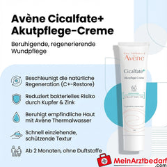 Beruhigende, regenerierende Creme zur Unterstützung trockener, oberflächlicher Hautirritationen im Gesicht, am Körper und im äußeren Intimbereich. Beschleunigt die epidermale Regeneration dank dem postbiotischen C+-Restore, reduziert bakterielles Risiko durch Kupfer- und Zinksulfat und pflegt mit Avène Thermalwasser. Duftstofffrei, gut verträglich, geeignet ab 2 Monaten.