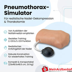 Realistisches Trainingsmodell zur Schulung von Nadel-Dekompression und thorakalen Notfallzugängen bei Pneumothorax. Entwickelt für Ausbilder in Notfallmedizin, Rettungsdienst und klinische Simulationen .