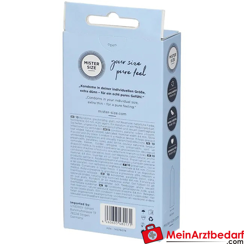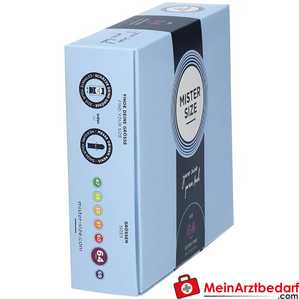 Lieferumfang: 1 Stück Mister Size 64 Kondom, nominale Breite 64 mm, Länge 220 mm, Naturkautschuklatex.
