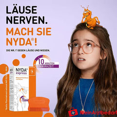 NYDA® Express Läuseshampoo zur Behandlung von Kopfläusen und Nissen. Schnelle, physikalische Wirkung bei kurzer Einwirkzeit; geeignet für Babys, Kleinkinder sowie während Schwangerschaft und Stillzeit. Packungsbeilage und ärztlichen Rat beachten.