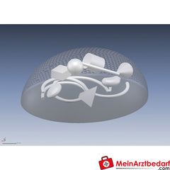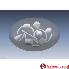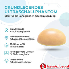 This oval phantom is a valuable aid for sonographers in basic training. It enables basic handling of the ultrasound probe. You can learn to recognise shapes, assess echogenicity and distance and work horizontally with the ultrasound probe.
