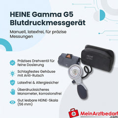 Scope of delivery: 1 x HEINE Gamma G5 manual blood pressure monitor, latex-free, including 1 washable 1-tube paediatric cuff (children's cuff, Velcro fastener), inflation ball and manometer - Manufacturer: Heine