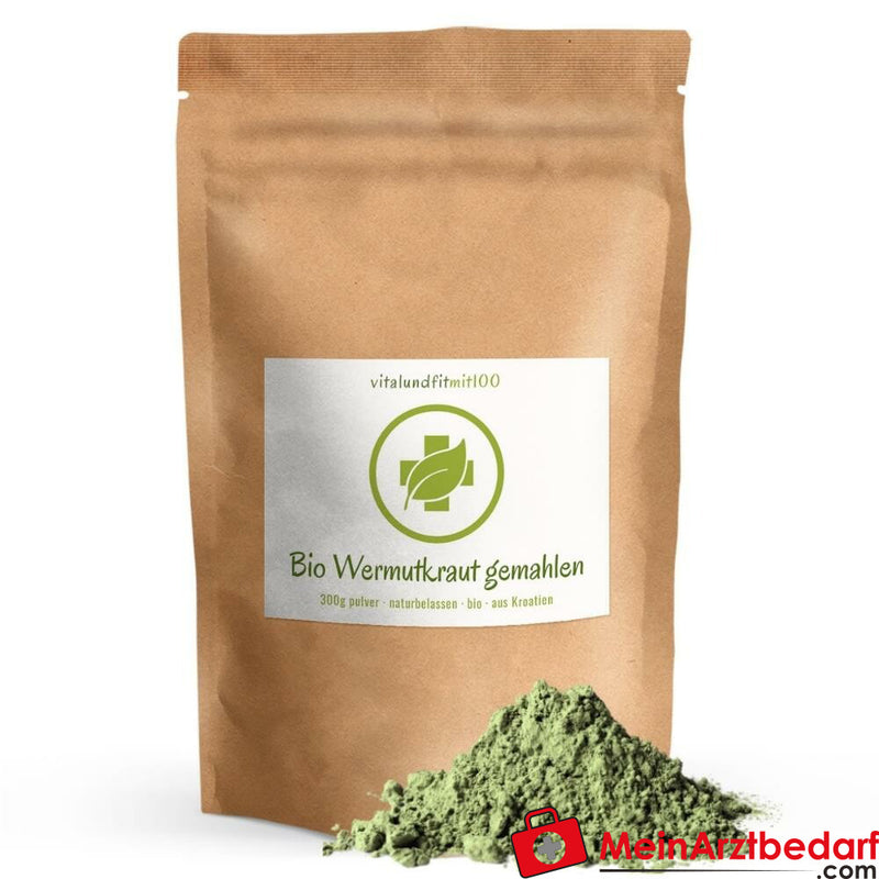 Scope of delivery: 1 x organic wormwood herb (Artemisia absinthium) 300 g, ground (loose herbs) Manufacturer: Vitalundfitmit100