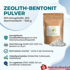 Scope of delivery: 1 pack of 500 g zeolite-bentonite powder (80% clinoptilolite, 20% montmorillonite). Manufacturer: Vitalundfitmit100