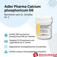 Volumen de suministro: 1 envase de Adler Pharma Calcium phosphoricum D6 250 mg comprimidos - Fabricante: Adler Pharma.