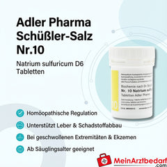 Volumen de suministro: 1 envase de Adler Pharma Sal de Schuessler nº 10 Natrium sulfuricum D6 comprimidos - Fabricante: Adler Pharma