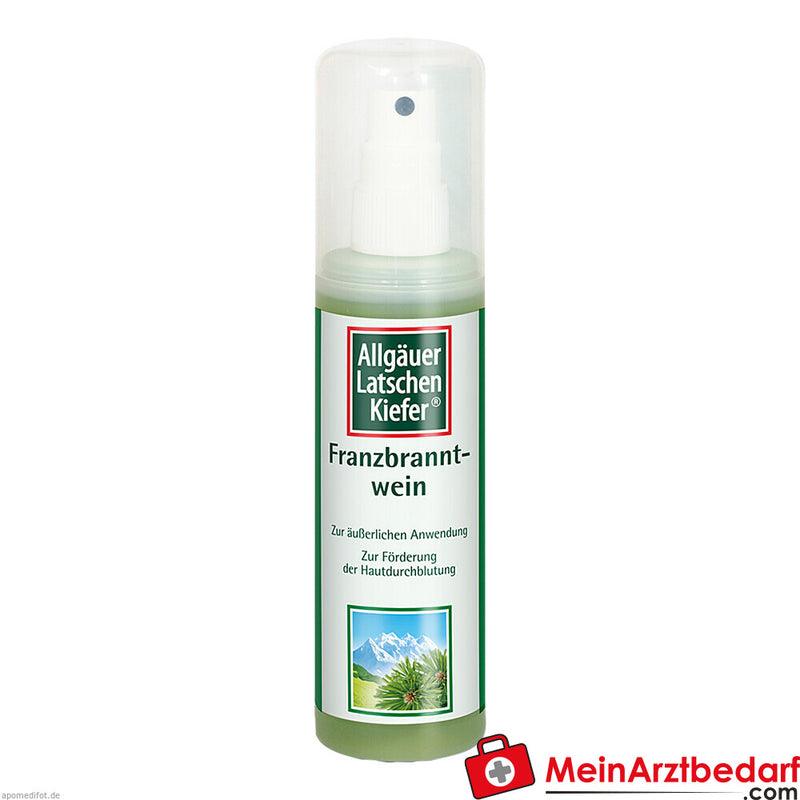 Allgäuer Latschenkiefer® Franzbranntwein es una solución con aceite original de pino de montaña de Allgäu, que se utiliza para favorecer la circulación sanguínea en la piel. Está indicado para adultos, adolescentes y niños a partir de 30 meses.