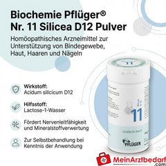 Volumen de suministro: 1 envase de Biochemie Pflüger® Nº 11 Silicea D12 Polvo 1000 mg (polvo) - Fabricante: Biochemie Pflüger®.