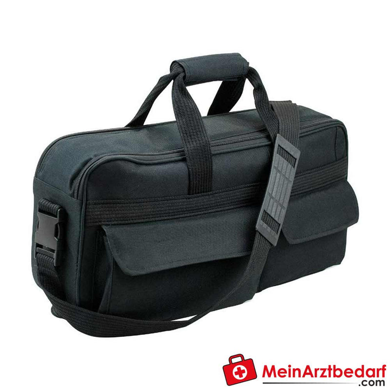 Adecuada para transportar y proteger botellas de oxígeno portátiles. La botella y los accesorios no están incluidos en el volumen de suministro. Compruebe regularmente si la bolsa presenta daños y utilícela sólo para el fin previsto.