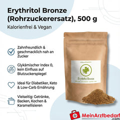 Volumen de suministro: 1 paquete de Eritritol Bronce (sustituto del azúcar de caña) en polvo, 500 g Fabricante: Vitalundfitmit100