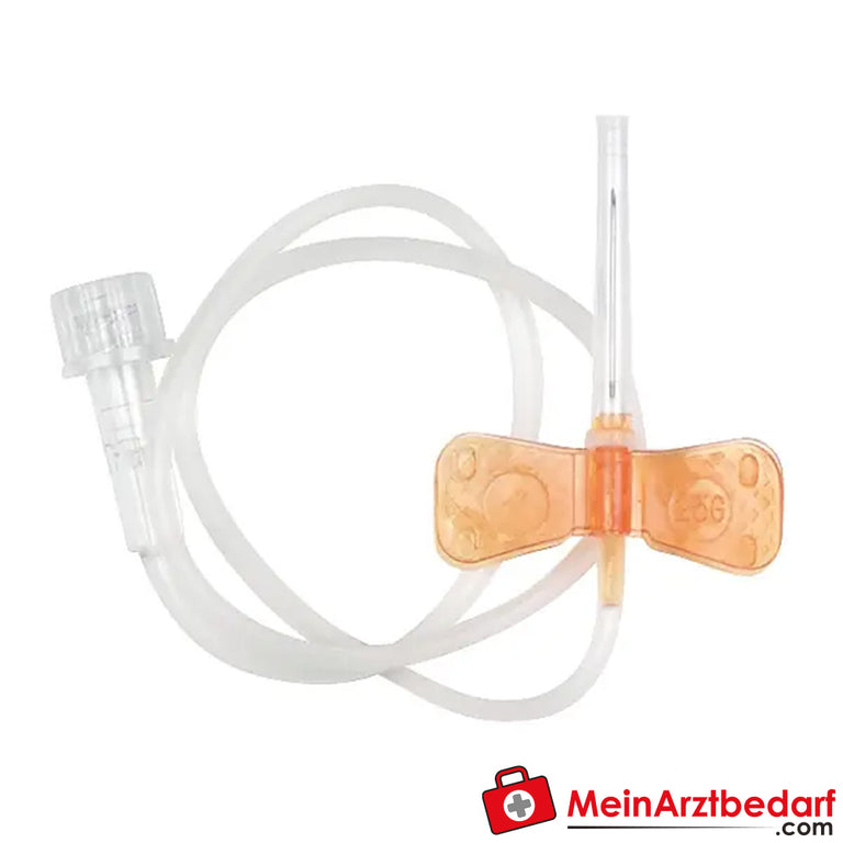 Cánula con alas para una venopunción segura y una fijación cómoda para el paciente durante infusiones e inyecciones. Las alas blandas, la punta 3-K ligeramente inclinada y el tubo sin dobleces reducen el traumatismo tisular y garantizan un flujo de fluidos fiable. Envase estéril, extraíble individualmente.