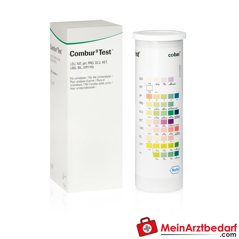Combur 9 Test - tiras reactivas de orina completas de 9 parámetros en un envase de 100 unidades