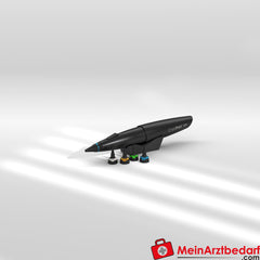 Das Gerät wird mit 4 Ring-Applikatoren für unterschiedliche Läsionsgrößen geliefert. Der mitgelieferte Konverter ermöglicht die Verwendung sowohl von 8 g als auch von 16 g N₂O-Patronen. Nach dem Anstechen bleibt der Druck in der Patrone über mehrere Wochen ohne Verlust erhalten. Die Patronen haben eine Haltbarkeit von 24 Monaten und können bei Raumtemperatur gelagert werden.