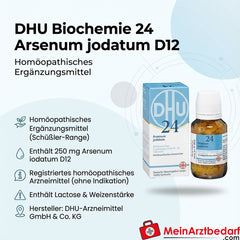 Volumen de suministro: 1 envase de DHU Biochemie 24 Arsenum iodatum D12, 250 mg comprimidos - Fabricante: Deutsche Homöopathie-Union (DHU)