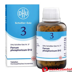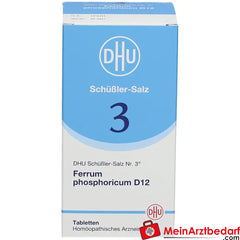 DHU Schuessler Salt No. 3 contiene el principio activo Ferrum phosphoricum en la potencia homeopática D12 y se utiliza como complemento en la terapia homeopática. Los glóbulos son un medicamento registrado y están disponibles en calidad farmacéutica reconocida.