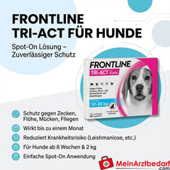 Volumen de suministro: 3 pcs. Frontline Tri-Act Spot-On para perros, 3 pipetas spot-on predosificadas (1 aplicación mensual cada una) - Fabricante: Frontline.