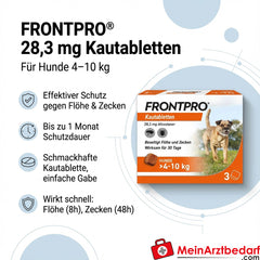 Volumen de suministro: 3 FRONTPRO comprimidos masticables, Afoxolaner 28,3 mg, para perros de 4-10 kg