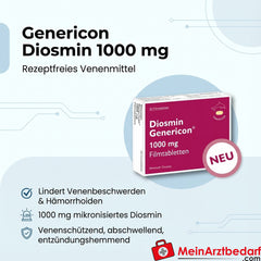 ¿Sufre los desagradables síntomas de los problemas venosos crónicos de las piernas o de las venas hemorroidales? Los problemas venosos pueden afectar gravemente a su vida cotidiana y provocar dolor, hinchazón y malestar. Ahora existe una nueva solución eficaz y efectiva Diosmin Genericon un medicamento de venta libre especialmente desarrollado para el tratamiento de problemas venosos y trastornos hemorroidales.
