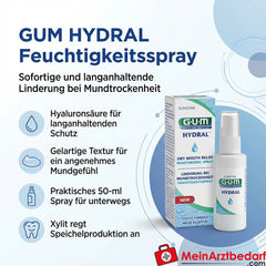 Spray hidratante para el alivio a corto plazo de la boca seca; práctico spray de 50 ml para llevar con una textura gelatinosa para una sensación suave en la boca.