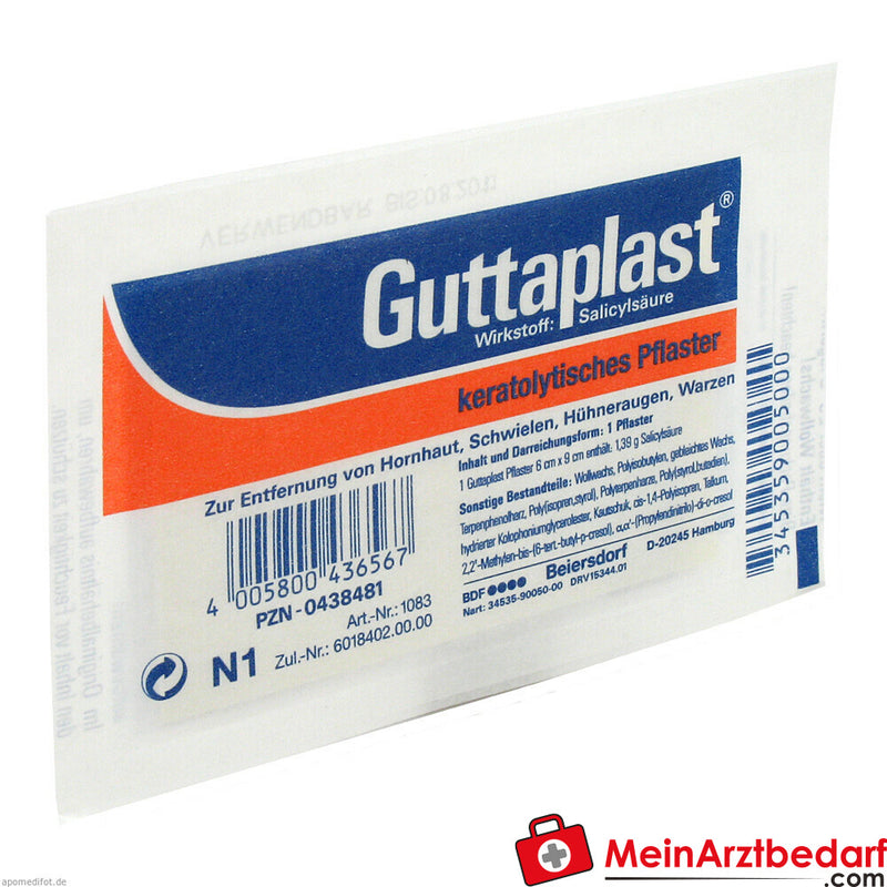 Volumen de suministro: 1 pieza de esparadrapo Guttaplast 6 × 9 cm (ácido salicílico 1390 mg, esparadrapo)