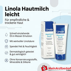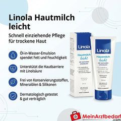 Volumen de suministro: 1 Linola Skin Milk light 200 ml, leche corporal ligera (emulsión de aceite en agua).