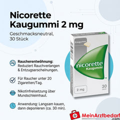 Volumen de suministro: 30 chicles Nicorette 2 mg sabor neutro - Fabricante: Nicorette