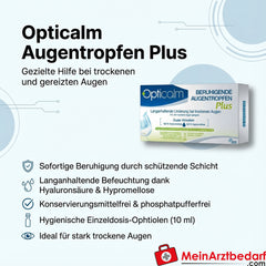 Volumen de suministro: 10 ml de Opticalm Colirio Calmante Plus, hipromelosa 1 mg y ácido hialurónico 1 mg, en viales monodosis higiénicos.