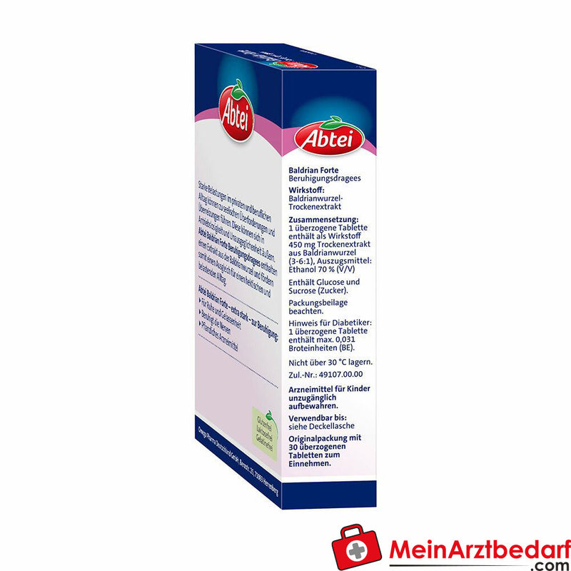 Volumen de suministro: 30 uds. Abbey Valerian Forte 450 mg extracto seco de raíz de valeriana, comprimidos recubiertos - Fabricante: Abtei