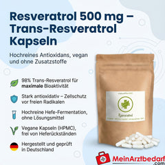 Resveratrol 500 mg - Trans-resveratrol cápsulas, 98% puro, vegano