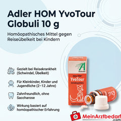 Adler HOM YvoTour Globuli 10 g - granules homéopathiques à saupoudrer contre le mal des transports chez les enfants