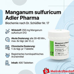 Médicament homéopathique enregistré contenant 250 mg de Manganum sulfuricum D12 par comprimé, complété par Zincum chloratum D12. Convient pour l'utilisation homéopathique selon l'approche de Schüssler ; contient du lactose et des excipients usuels.