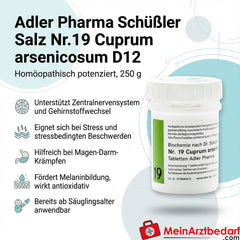 Contenu de la livraison : 1 paquet Adler Pharma Sel de Schüssler No.19 Cuprum arsenicosum D12 comprimés 250 g - Fabricant : Adler Pharma