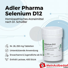 Contenu de la livraison : 1 boîte de comprimés de sélénium Adler Pharma D12 n° 26, 250 mg - Fabricant : Adler Pharma