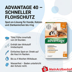 Solution Advantage Spot-on Imidacloprid 40 mg, 4 x 0,4 ml - protection rapide contre les puces pour chiens, chats et lapins d'ornement