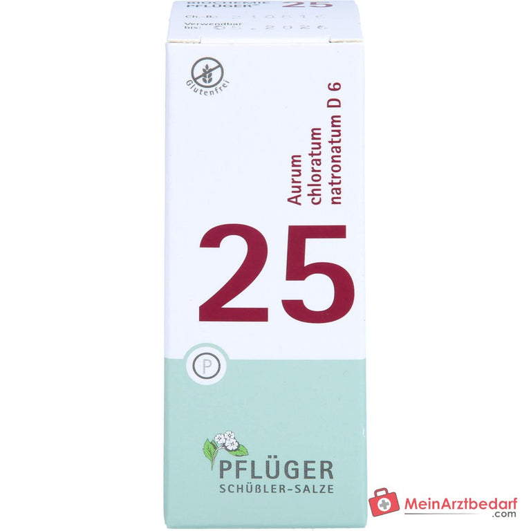 Conditionnement : 1 boîte de Biochemie Pflüger No 25 Aurum chloratum natronatum D6, Natrium tetrachloroauratum D6 250 mg par comprimé, comprimés solubles dans la bouche - Fabricant : Biochemie Pflüger.
