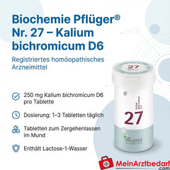 Conditionnement : 1 boîte de comprimés de Biochemie Pflüger N° 27 Kalium bichromicum D6 250 mg - Fabricant : Biochemie Pflüger.