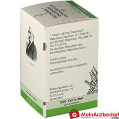 Contenu de la livraison : 1 boîte de comprimés de BIOCHEMIE 7 Magnesium phosphoricum D3 250 mg (forme de comprimés, 250 mg de substance active par comprimé, poids individuel 265 mg) - Fabricant : BIOCHEMIE 7