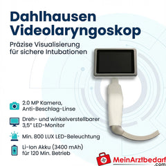 Vidéolaryngoscope Dahlhausen pour lame à usage unique, écran 3,5", caméra 2,0 MP