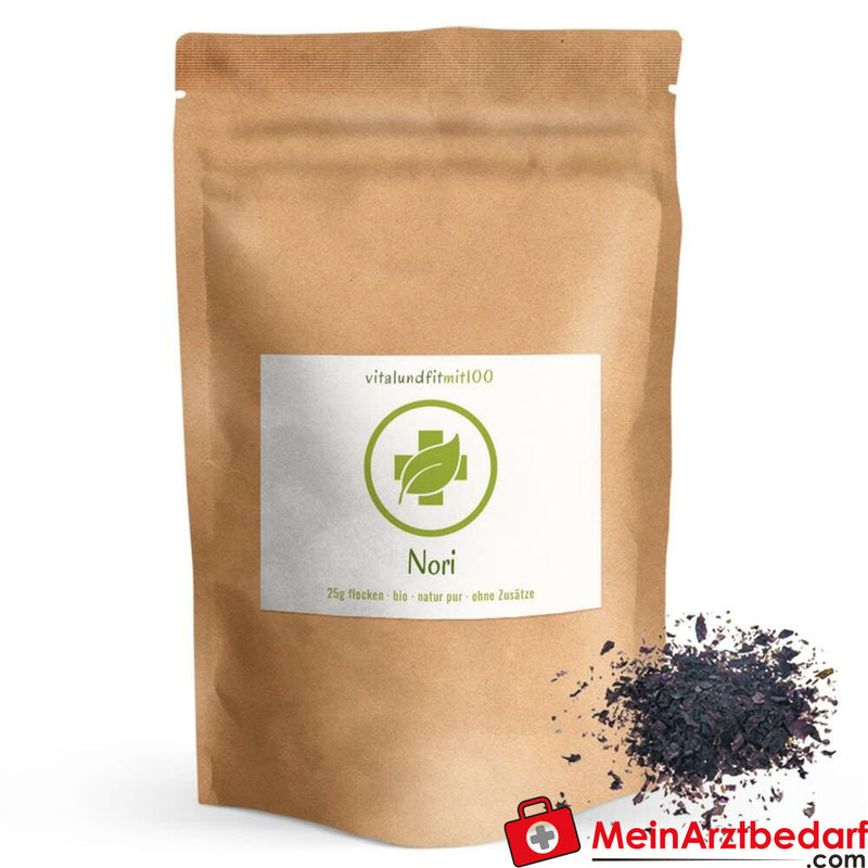 Contenu de la livraison : 1 paquet de flocons de nori bio (Porphyra), 25 g, séché à l'air (qualité crudité), sans gluten Fabricant : Vitalundfitmit100