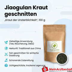 Contenu de la livraison : 1 paquet (100 g) d'herbe de jiaogulan (Gynostemma pentaphyllum), coupée. Fabricant : Vitalundfitmit100