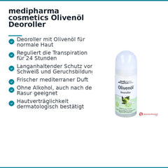 medipharma cosmetics Déodorant à bille à l'huile d'olive Fraîcheur Méditerranéenne, 50 ml