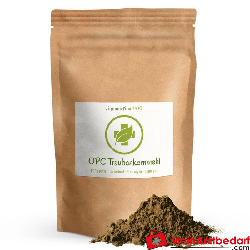 Contenu de la livraison : 1 paquet de farine de pépins de raisin bio (OPC), 500 g, poudre. Fabricant : Vitalundfitmit100