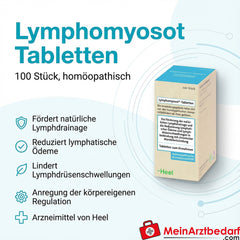 - Photo symbole - taille de l'emballage selon la description - Lymphomyosot comprimés et gouttes activent le système lymphatique qui est responsable de l'élimination des substances non utilisables par le corps. Les comprimés et les gouttes Lymphomyosot favorisent le drainage lymphatique naturel et réduisent les œdèmes lymphatiques et les gonflements des glandes lymphatiques liés à l'amygdalite chronique. Homéopathie pour stimuler la régulation du corps.