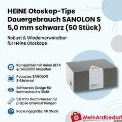 Contenu de la livraison : 50 pcs. Spéculums d'otoscope HEINE à usage permanent SANOLON S 5,0 mm noir, réutilisables - Fabricant : HEINE