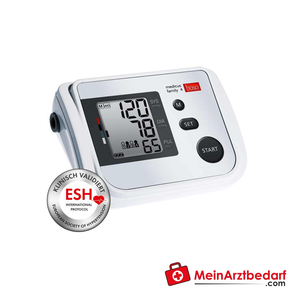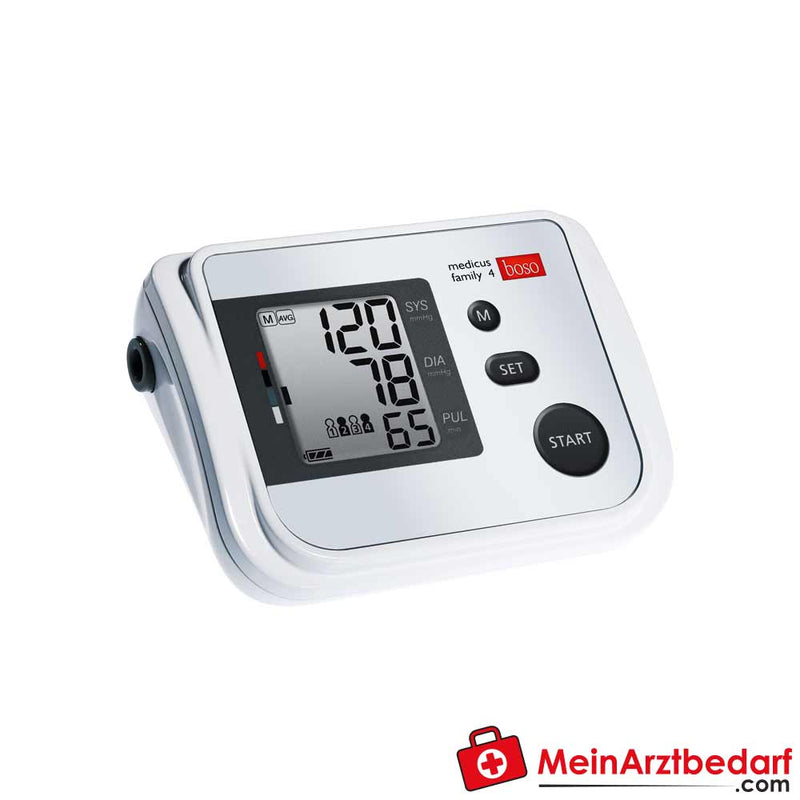 Il boso medicus family 4 è un misuratore di pressione arteriosa da braccio superiore clinicamente validato per il monitoraggio della pressione arteriosa e del polso a domicilio. Quattro memorie separate consentono di documentare separatamente i valori misurati per la famiglia, il partner o i gruppi di pazienti; il dispositivo è adatto all'uso .