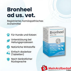 Bronheel ad us. vet. è un medicinale omeopatico registrato per la promozione del benessere e della rigenerazione nei cani e nei gatti. Adatto per l'accompagnamento a breve termine di disturbi minori; l'uso è consigliato dopo una visita veterinaria.