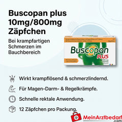 Contenuto della confezione: 1 confezione di Buscopan plus 10 mg/800 mg supposte (rettale).