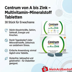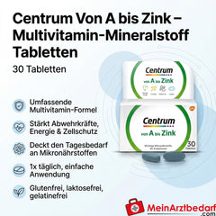 Contenuto della confezione: 30 Centrum Dalla A allo Zinco, compresse multivitaminiche-minerali.