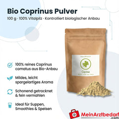 Contenuto della fornitura: 1 confezione di polvere di Coprinus bio (Coprinus comatus), 100 g di polvere. Produttore: Vitalundfitmit100